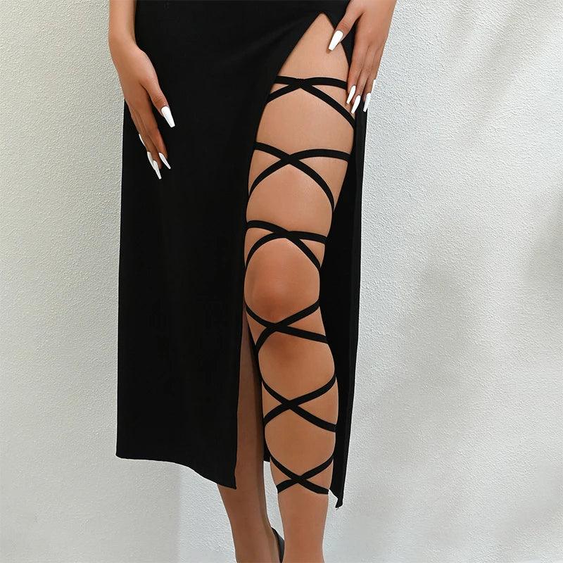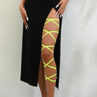 Stylowy harness w postaci elastycznych pasków oplatających nogę od uda do łydki. Tworzy efektowny, krzyżujący się wzór, który pięknie eksponuje nogę w sukienkach z rozcięciem czy krótkich spodenkach. Elastyczny materiał dopasowuje się do sylwetki, nie krępując ruchów. Idealny dodatek do odważnych stylizacji, imprez i sesji zdjęciowych.